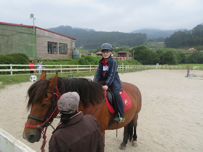 - Bautismo hípico: os nenos e nenas que quixeron montaron en cabalo guiado polas monitoras.